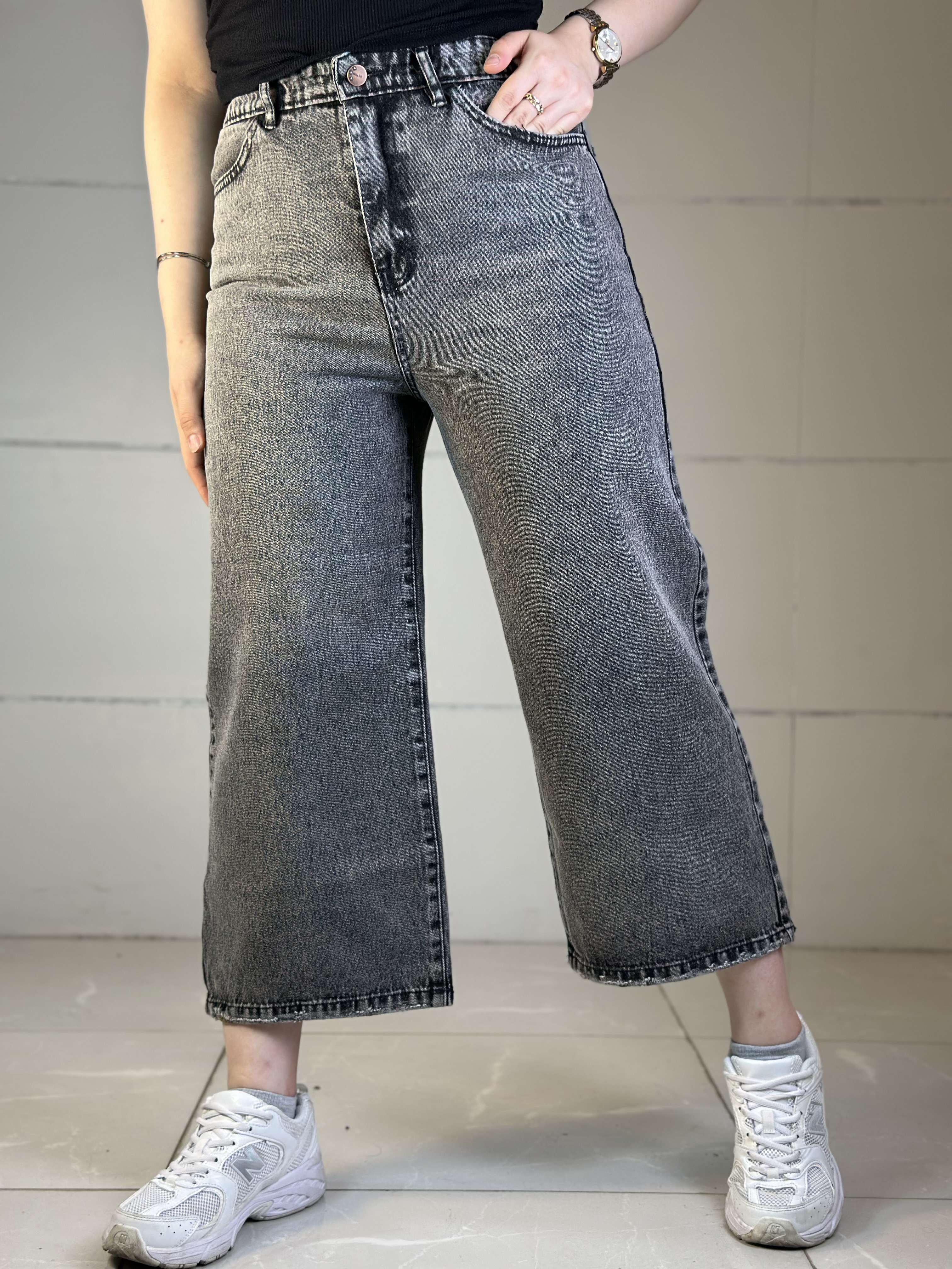 شلوار جین وایدلگ پشت کش طوسی