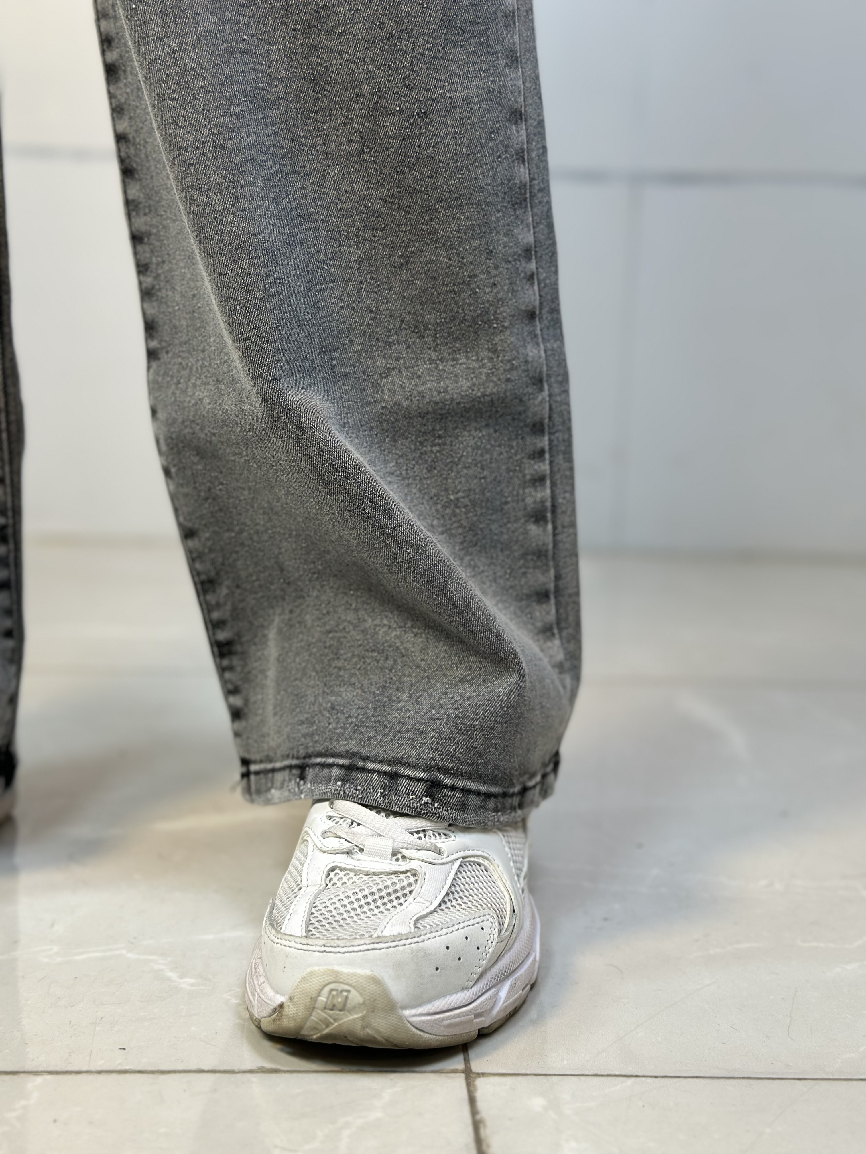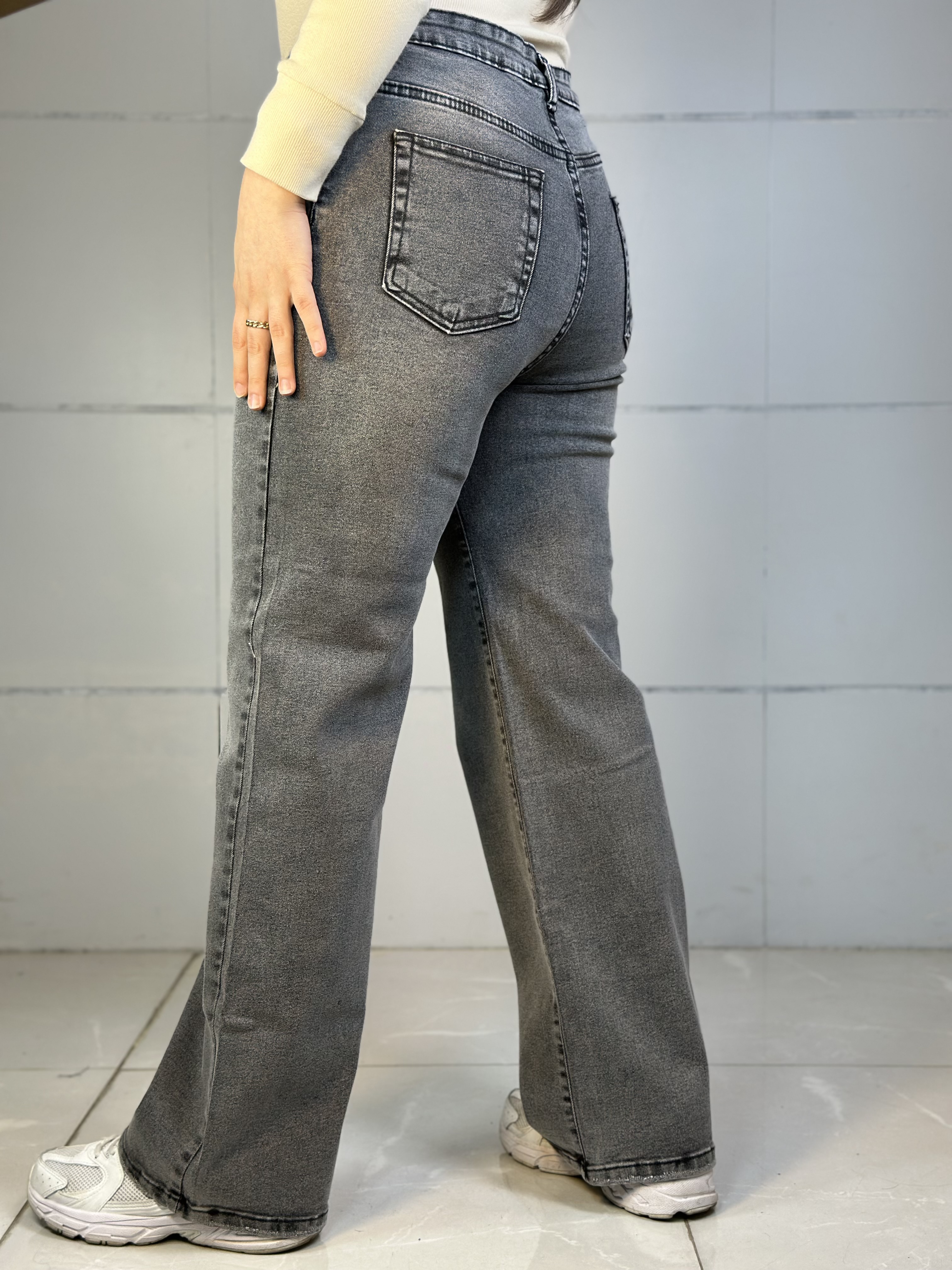 شلوارجین نیم بگ سایز بزرگ طوسی
